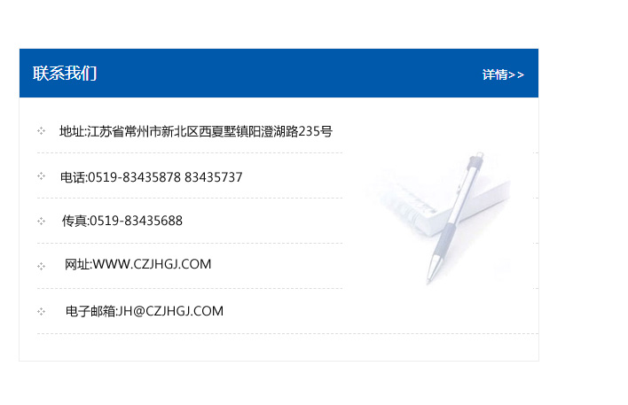 傳真:0519-83435688    郵編:213135    網址:WWW.czjhgj_com.lqjggxxm.com    電子郵箱:JH@czjhgj_com.lqjggxxm.com